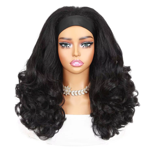 20 Inches Headband Synthetic Hair Wig High Quality Long Curly Bouncy Wave Heat-Resistant Women High Temperature Fiber Wigs